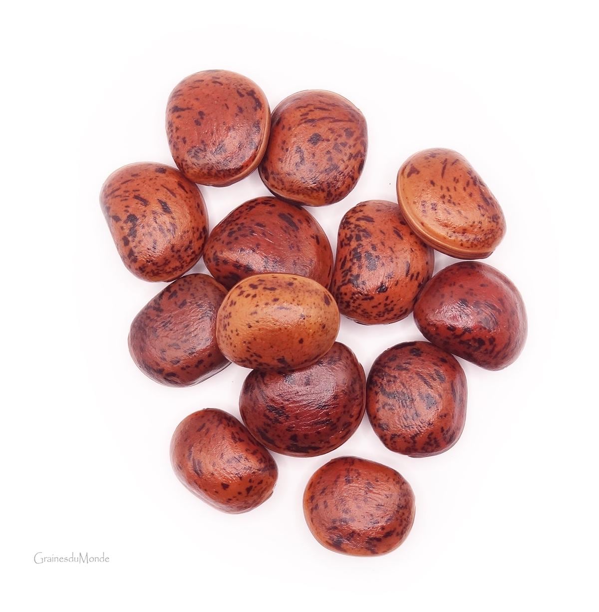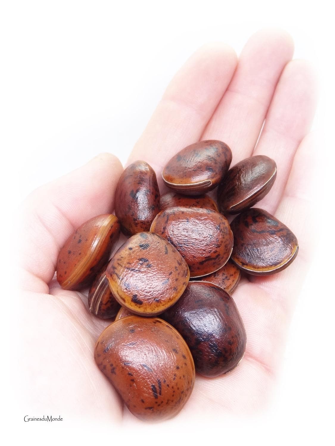 Approx 22 to 30mm in length, speckled, warm colour, hard, polishable seed coat